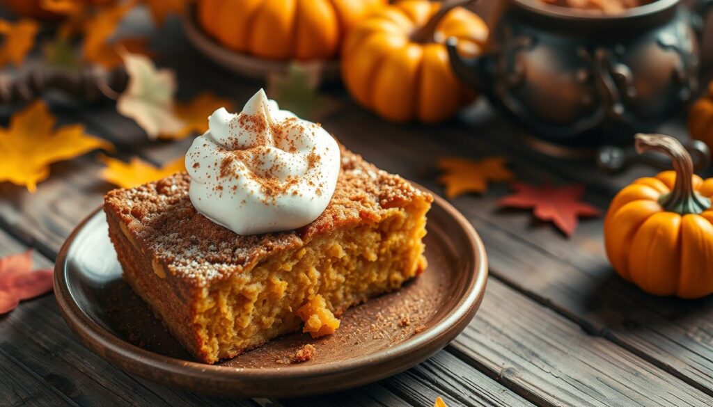 There are many ways to serve your pumpkin dump cake with spice cake mix. You can add different toppings to make it even better. Whipped cream, ice cream, and caramel sauce are great choices. They add sweetness and enhance the cake’s flavors.